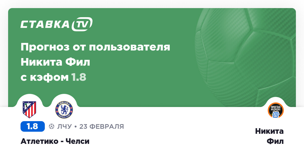 Атлетико Челси Прогноз - Прогноз Атлетико Мадрид - Челси / Лига Чемпионов 23.02 ... : Инструменты для анализа и прогнозов ставок.